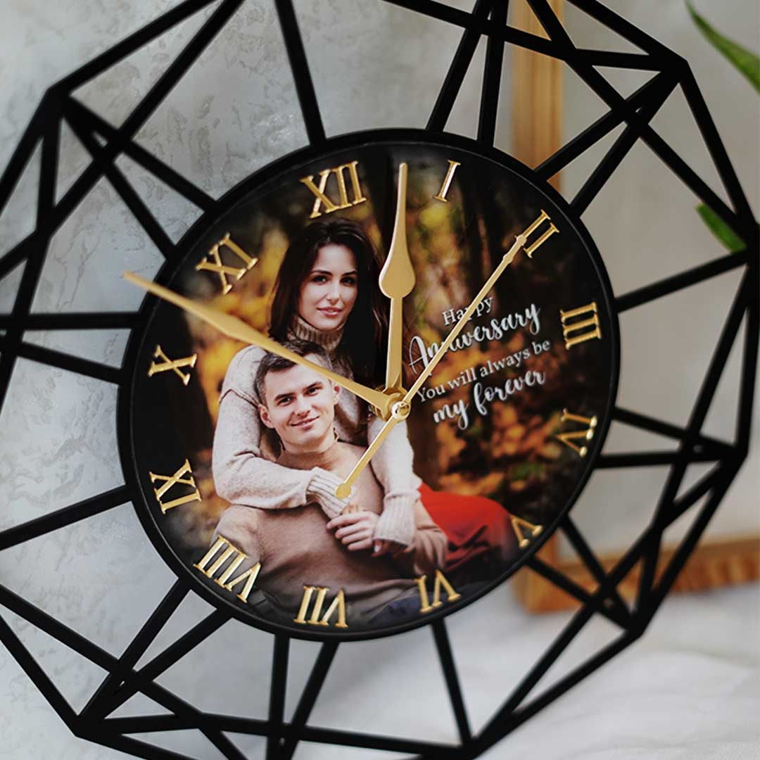 The Personalized Couple Wall Clock is a beautifully crafted timepiece made from high-quality acrylic. Measuring 12 x 12 inches, this square-shaped clock features a stunning UV-type print, adding a touch of elegance to any room. The Personalized Couple Wall Clock offers a unique touch by allowing customization with photos or custom text. Ideal for special occasions, it makes a perfect wedding gift, anniversary gift, or birthday gift.The ability to add personal elements ensures that the clock not only serves as a functional timepiece but also as a cherished keepsake that captures meaningful moments and memories. Additionally, it serves as a charming piece of home decor, celebrating the love and togetherness of a couple.