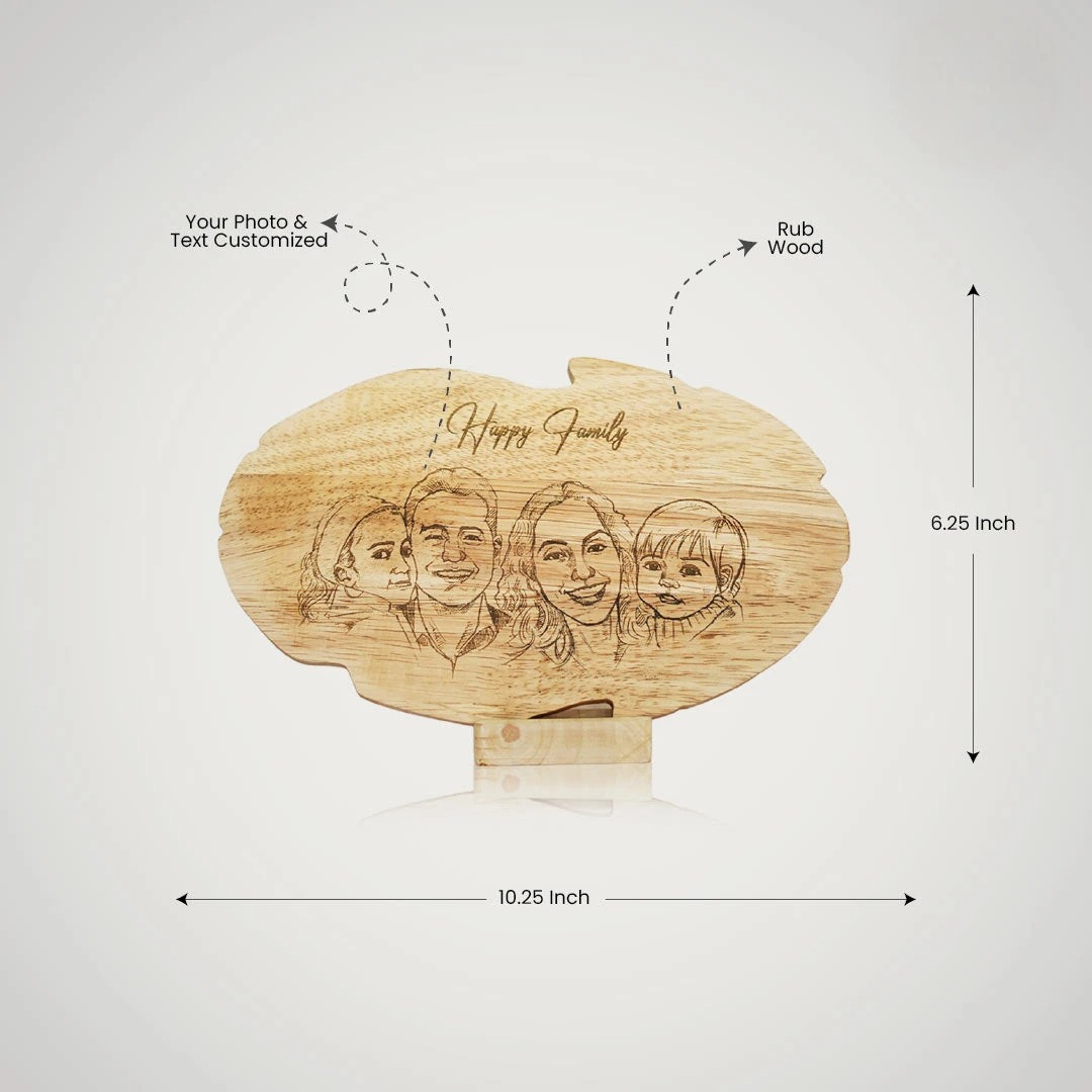 - Photos are engraved on polished rub wood.
